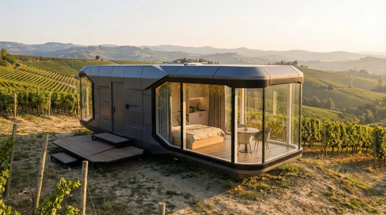 Одним из практичных решений для развития винного туризма становятся капсульные модульные дома. Такой формат позволяет создать размещение рядом с виноградником без масштабного капитального строительства.